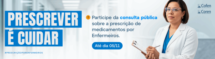 O prazo para participação na consulta pública aberta pelo Conselho Federal de Enfermagem (Cofen) sobre a regulamentação da prescrição de medicamentos por enfermeiros termina nesta quarta-feira (5/11). A iniciativa busca consolidar diretrizes que orientem a prática, reforçando a autonomia profissional e garantindo maior segurança no atendimento à população.